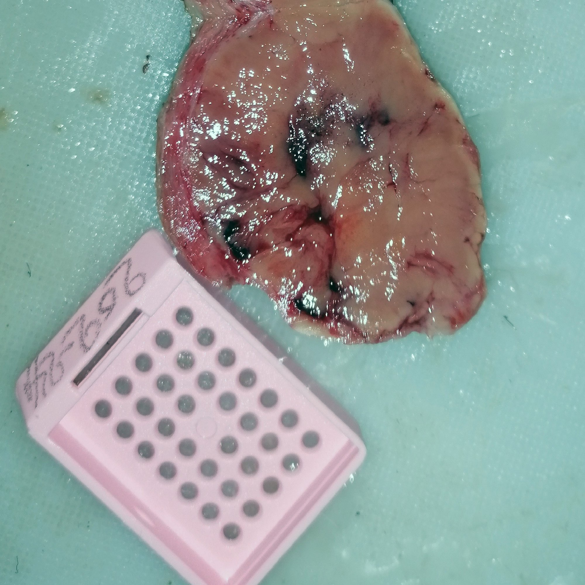 Makroskopisch handelt es sich im vorliegenden Fall um einen etwas über