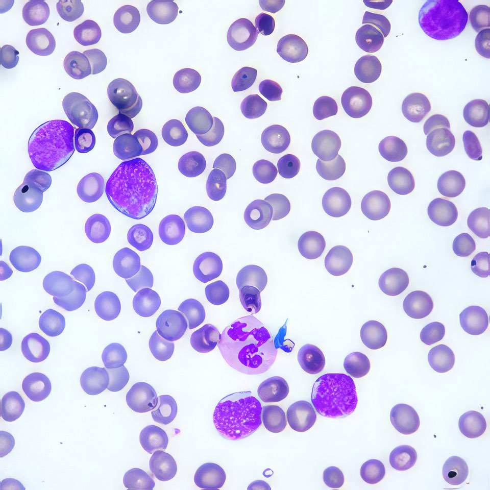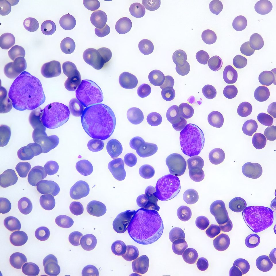Bis vor einigen Jahren wurde die FNA ausschließlich bei erwachsenen Patienten und nur selten bei Kindern angewendet {1}. Im vorliegenden Fall zeigen die ausgezeichneten Bilder, dass das Ergebnis von der Erfahrung des Arztes abhängt, der sie anwendet. Die durch die Pap-Färbung gut sichtbare Chromatinstruktur macht zusätzliche Tests zur Abgrenzung von anderen kleinzelligen Tumoren wie Ewing-Sarkom, Neuroblastom und Wilms-Tumor überflüssig. Die zytologische Diagnose wird durch die klinischen Daten gestützt. Die für die ALL typische Knochenmarksbeteiligung lässt sich an den klinischen Daten ablesen, d.h. an der niedrigen Zahl der roten Blutkörperchen (RBC) und der Blutplättchen sowie dem niedrigen Hämoglobinspiegel (HB). Etwa 80 % der ALL sind vom B-Zell-Typ. Ihre Entwicklung scheint von angeborenen DNA-Veränderungen abzuhängen. Wie in einer neueren Arbeit gezeigt wurde, sind Kinder mit Trisomie 21, der genetischen Ursache des Down-Syndroms, mit einem 20-fach erhöhten Risiko für ALL assoziiert {2}. Im Gegensatz zur ALL tritt die akute myeloische Leukämie (AML) nicht vor der Adoleszenz auf.